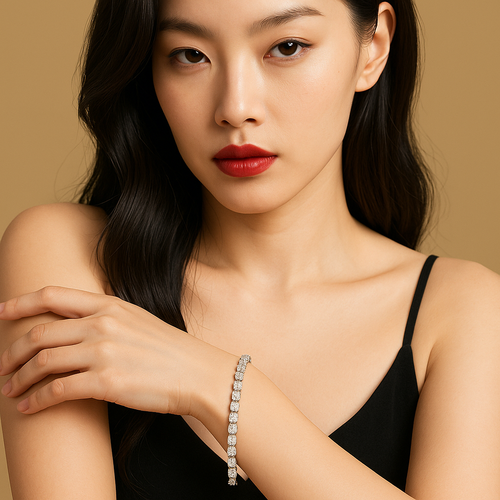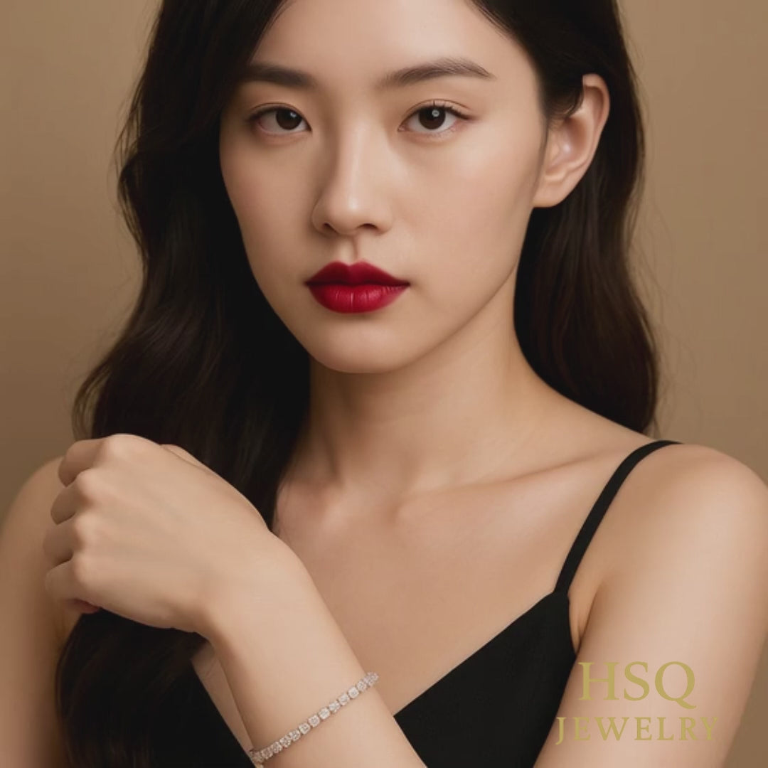 - Setting: Continuous four-prong tennis setting for flexibility and brilliance